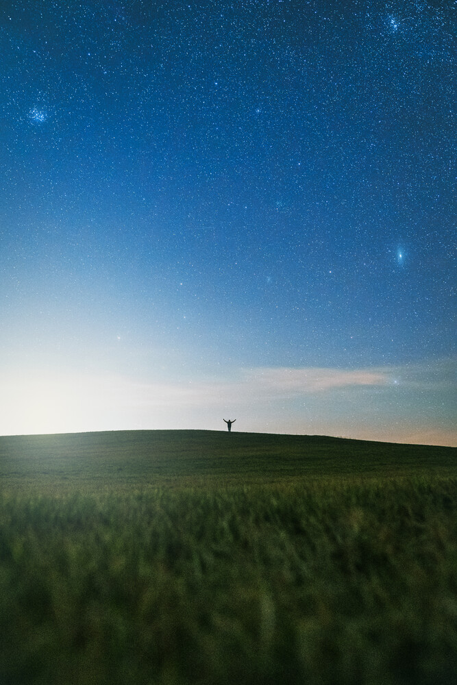 Photo art by Max Saeling: Person gazing at the star-filled night sky.