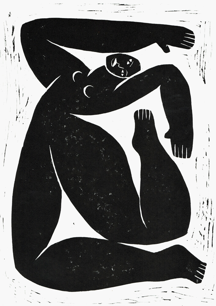 Illustration by Cépé: stylized depiction of a nude woman in soft colors