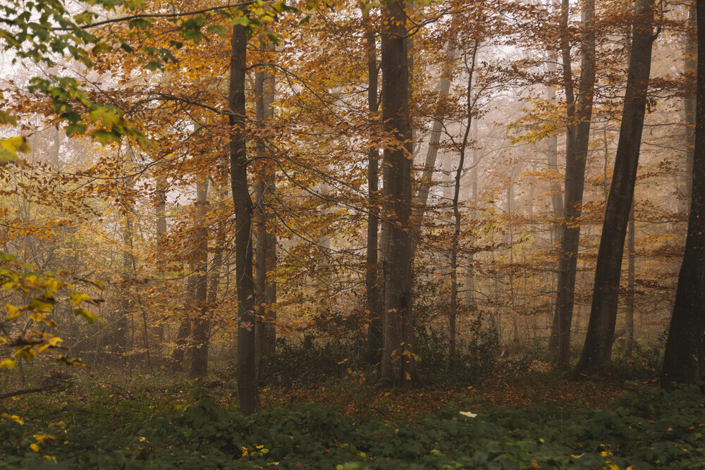 Photo art by Nadja Jacke: mist enveloping a serene autumn woodland