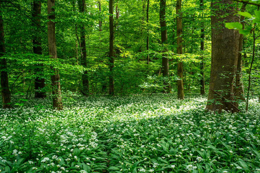 Mockup Calm green forest with fresh trees and a serene atmosphere