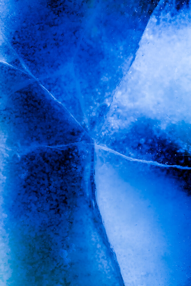 Ice crystals on a smooth ice surface in a calm blue hue