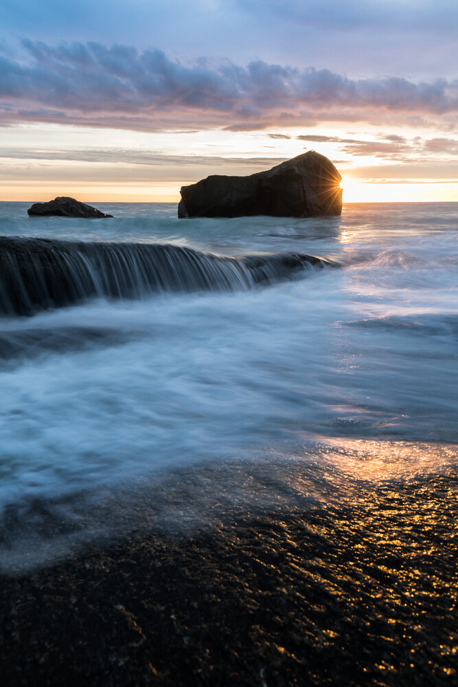 Photo art by Sebastian Worm: calm coastal landscape at midnight sun