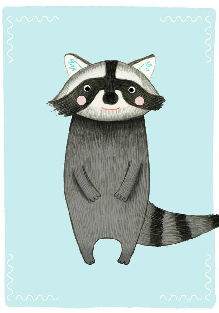Wall art by Judith Loske: cute raccoon in soft colors, perfect for any room.