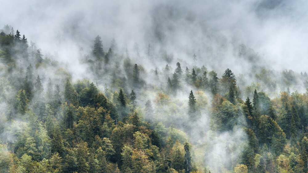 Mockup Photo art by Tillmann Konrad: forest landscape with mist and autumn colors