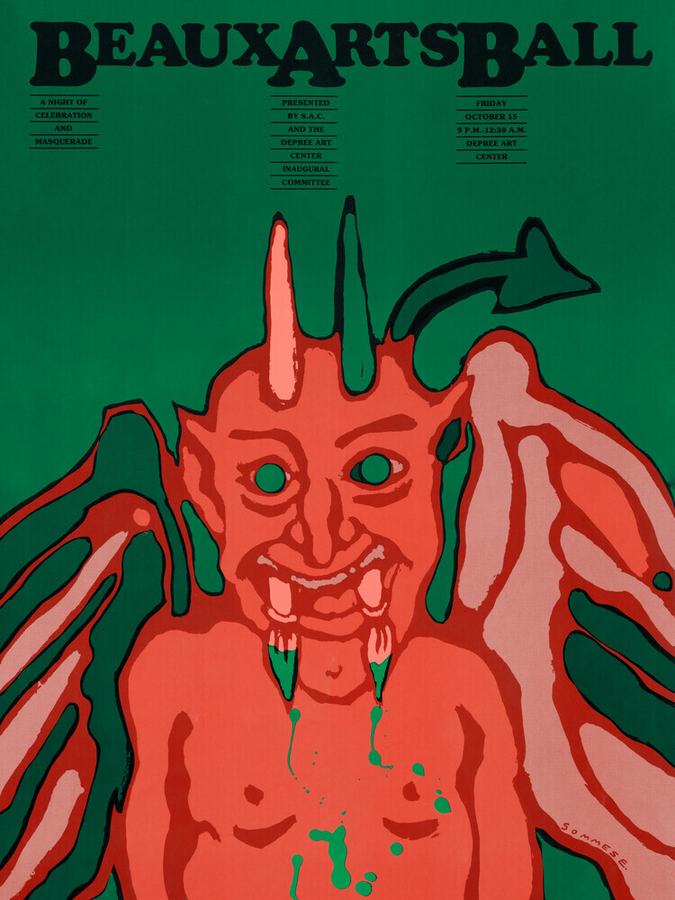 Illustration of a Beaux Arts ball featuring elegant guests in a festive atmosphere.